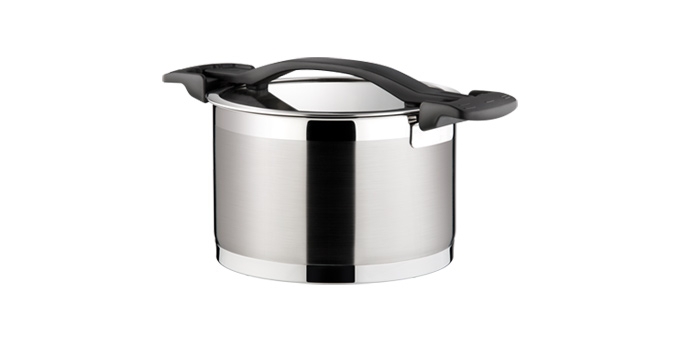 - - luxusný kuchynský riad s revolučným systémom regulácie pary a cedenia