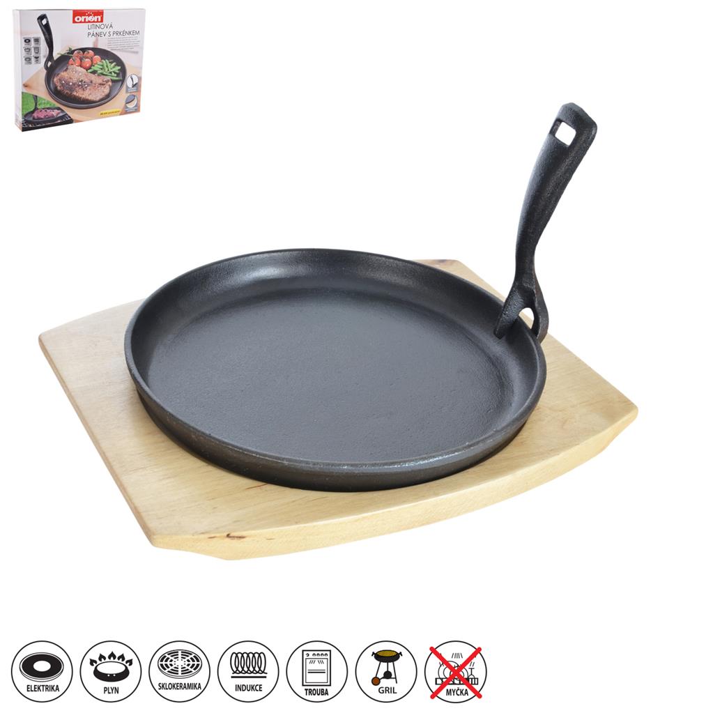 Liatinová panvica 22cm z čiernej liatiny s doskou