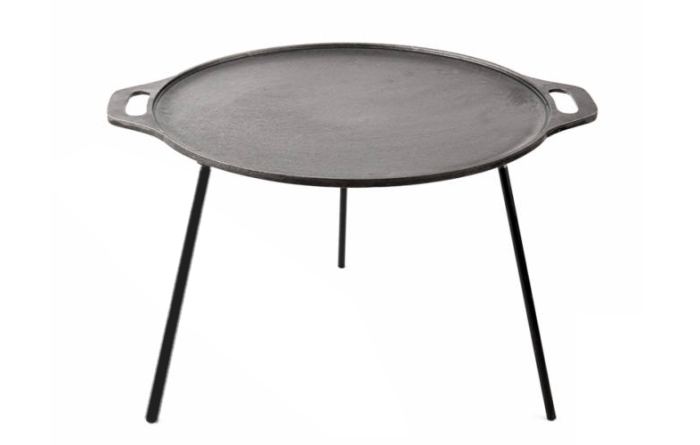 - hrubá rovná liatinová panvica s vyhnutým okrajom - trojnožka