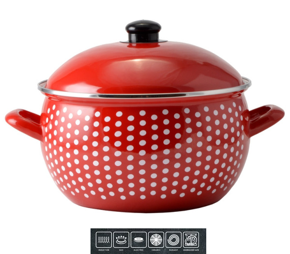 - kastról vyrobený z ocele a kvalitného vysoko odolného smaltu so špeciálnym tvarom proti vyvretiu zabezpečujúcim premiešavanie počas varenia