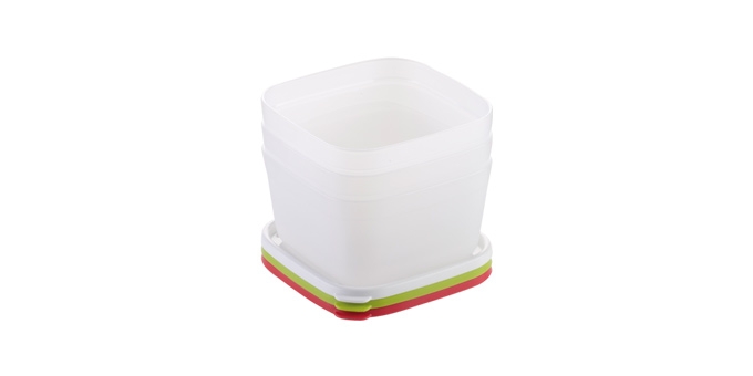 - - vybavené farebnými viečkami pre ľahké rozlíšenie pri oddelenom skladovaní mäsa, zeleniny, ovocia apod., stohovateľné na seba aj do seba pre úsporu miesta